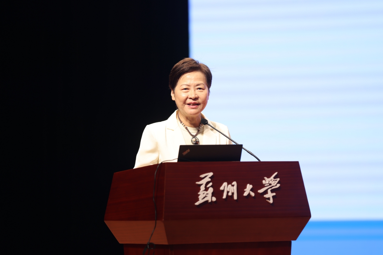 張曉宏對林鄭月娥女士一行表示歡迎,并從歷史沿革、學科建設、人才培養等方面介紹了學校的發展情況。他指出,蘇州大學始終以赤誠之心聯結香港,尤其是與香港高校在師生互訪、科研協同、文化傳承等方面開展了廣泛交流合作。展望未來,期待能進一步加強與香港的師生交流、教育合作和協同創新,攜手并進,互利共贏,共同發展。