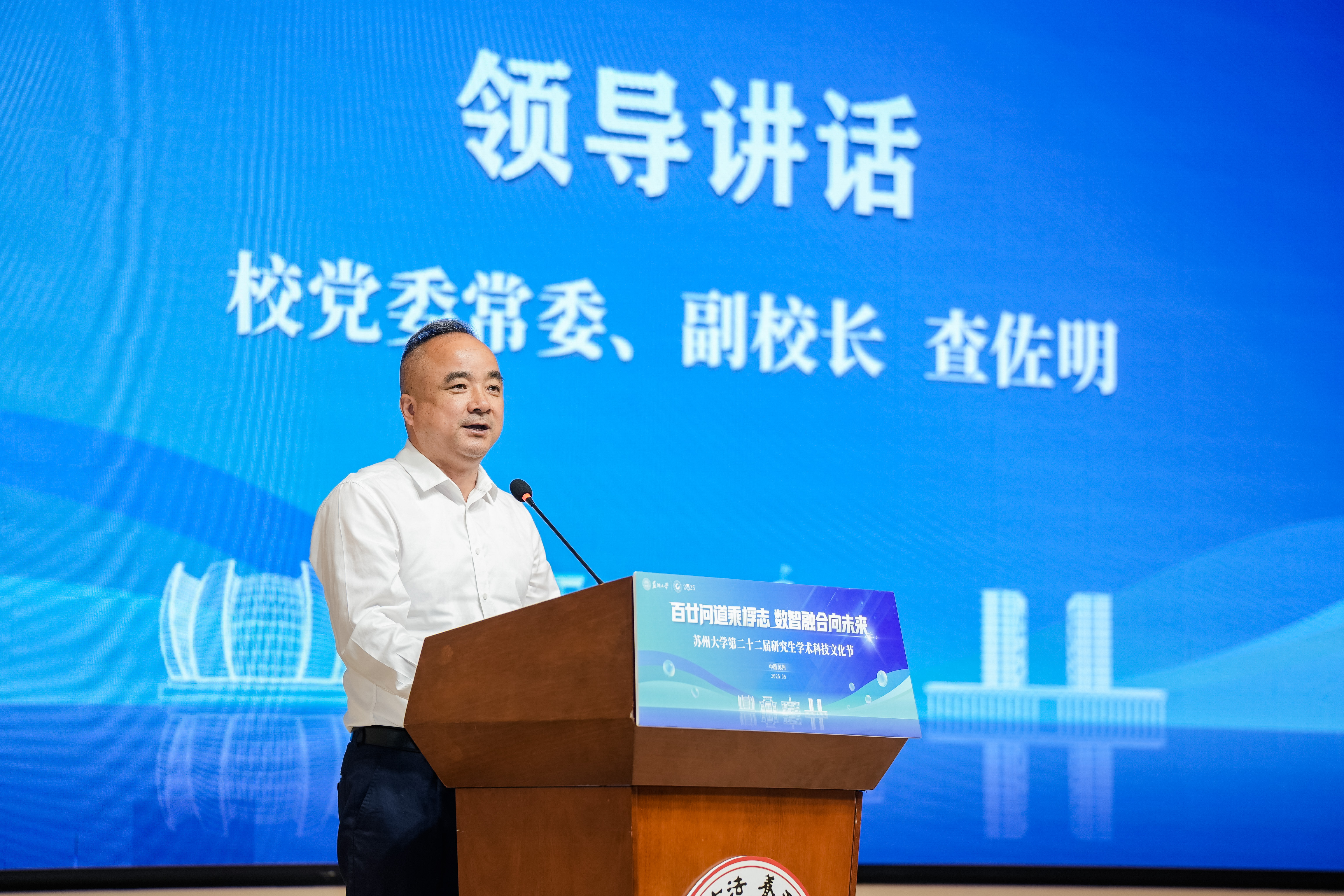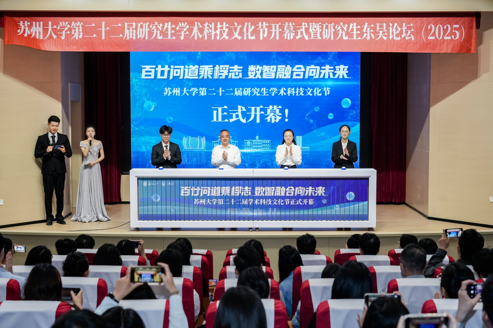 513日,蘇州大學第二十二屆研究生學術科技文化節開幕式暨研究生東吳論壇(2025)在天賜莊校區紅樓學術報告廳舉辦。本屆研究生學術科技文化節以“百廿問道乘桴志,數智融合向未來”為主題。校黨委常委、副校長查佐明出席活動,省學生聯合會駐會執行主席,兄弟高校研究生會代表,學校相關職能部門負責人,全體研究生輔導員,各基層研究生培養單位研究生代表等參加活動。