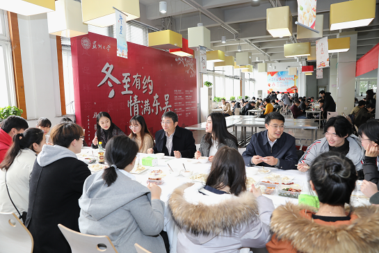 隨著一盤盤熱氣騰騰的餃子端上桌,大家臉上都洋溢起勞動后的幸福笑容。校領(lǐng)導(dǎo)們還走到學(xué)生中間,為大家送上了暖心餃子,并向同學(xué)們致以美好的節(jié)日問候。來自徐州的大一學(xué)生王瀟苒稱:“確實(shí)意外,書記還親自給我們送餃子。以前在家過年時(shí)一家人會包餃子,如今來到蘇州在蘇大過冬至,同樣有一番溫暖滋味。”