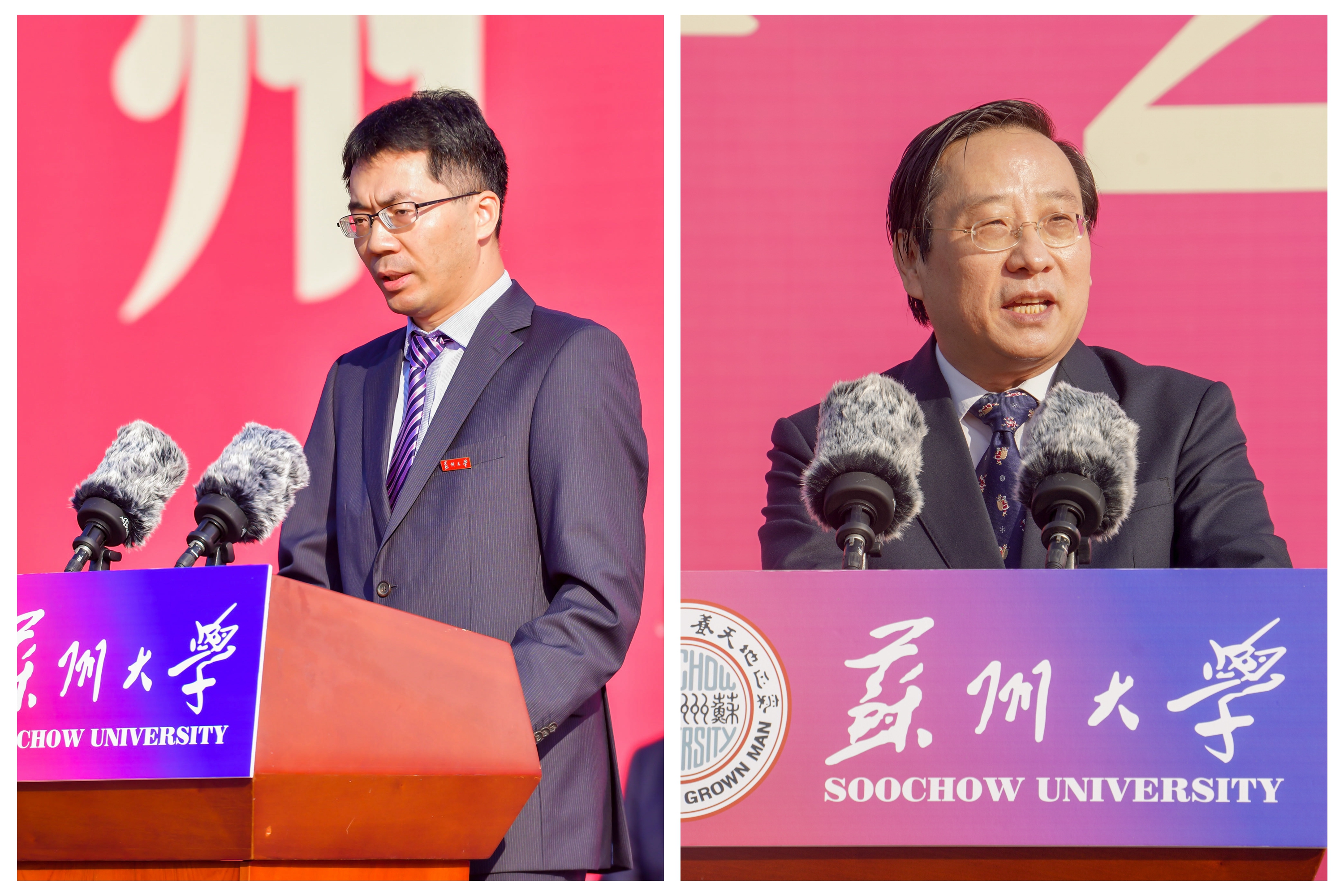 “東方將白,東吳門尤為奪目,延續(xù)著大學(xué)精神;紅日高升,尊師軒邊書聲瑯瑯,科研人用奮進(jìn)追趕日月;黃昏余暉,天賜莊古典與現(xiàn)代的建筑群閃耀著金色霞光,是信念的傳承;明月半墻,夜色如墨,照向炳麟館夜讀的學(xué)子…”今年,熊思東校長(zhǎng)以“大學(xué)的色彩”為題發(fā)表講話。他說,漫步蘇大,這座跨越三個(gè)世紀(jì)的大學(xué),儼然是被打翻了調(diào)色盤,各色顏料傾情灑下,暈染了校園的十二時(shí)辰。而今天的蘇大之所以五光十色,正是因?yàn)橐淮嗄陮W(xué)子來到蘇大,用青春之筆為她添加了明亮動(dòng)人的色彩。