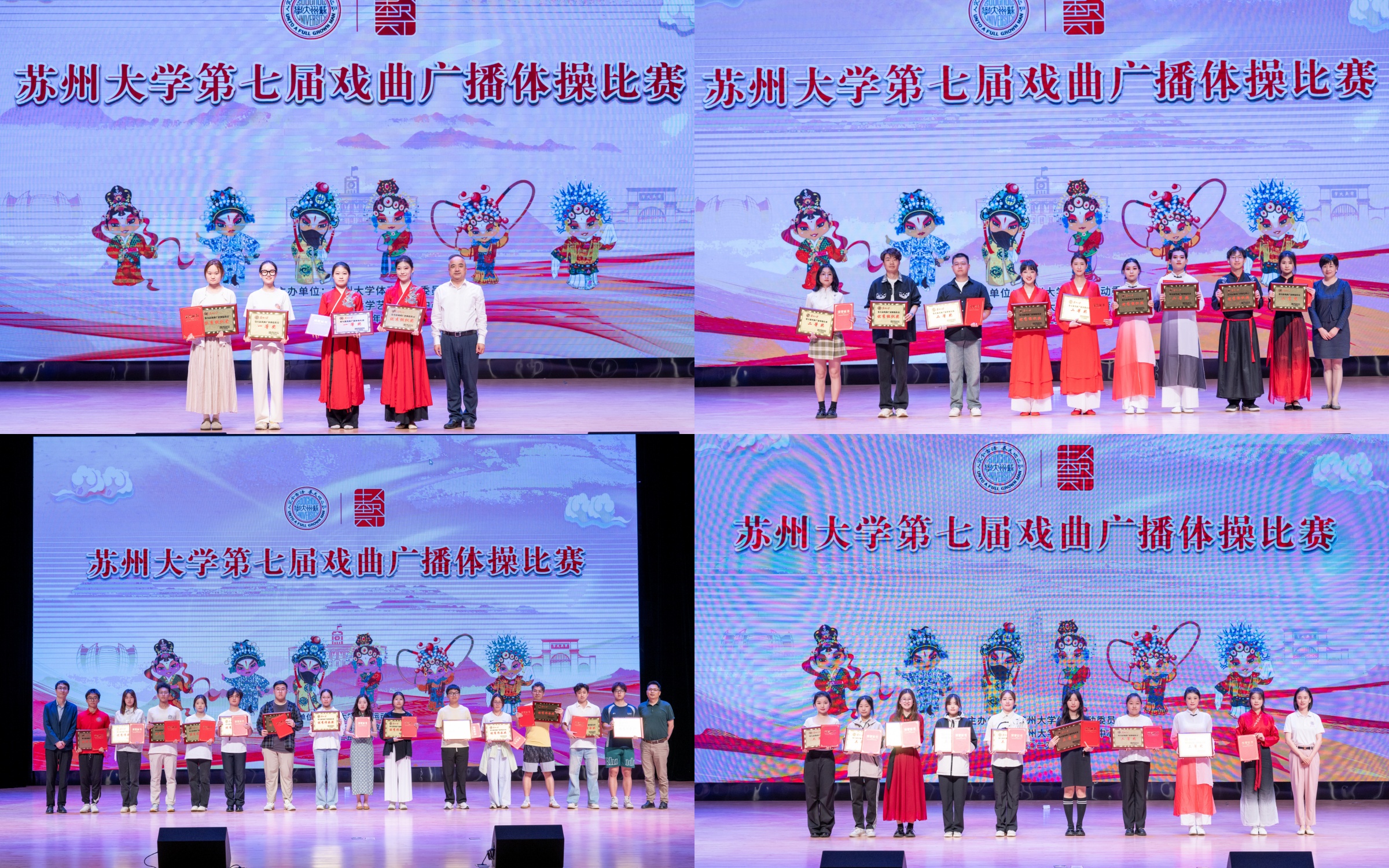 為深入學(xué)習(xí)貫徹習(xí)近平總書記關(guān)于傳承和弘揚(yáng)中華優(yōu)秀傳統(tǒng)文化的系列重要論述,落實(shí)學(xué)校美育浸潤行動(dòng),持續(xù)推進(jìn)“戲曲進(jìn)校園”與“體美融合”育人實(shí)踐,5月18日,由校體育運(yùn)動(dòng)委員會、藝術(shù)教育中心主辦,學(xué)生藝術(shù)聯(lián)合會承辦的蘇州大學(xué)第七屆戲曲廣播體操比賽在存菊堂舉行。校黨委常委、副校長查佐明出席活動(dòng),相關(guān)職能部門負(fù)責(zé)人參加活動(dòng),來自28個(gè)學(xué)院(部)的近700名同學(xué)參賽