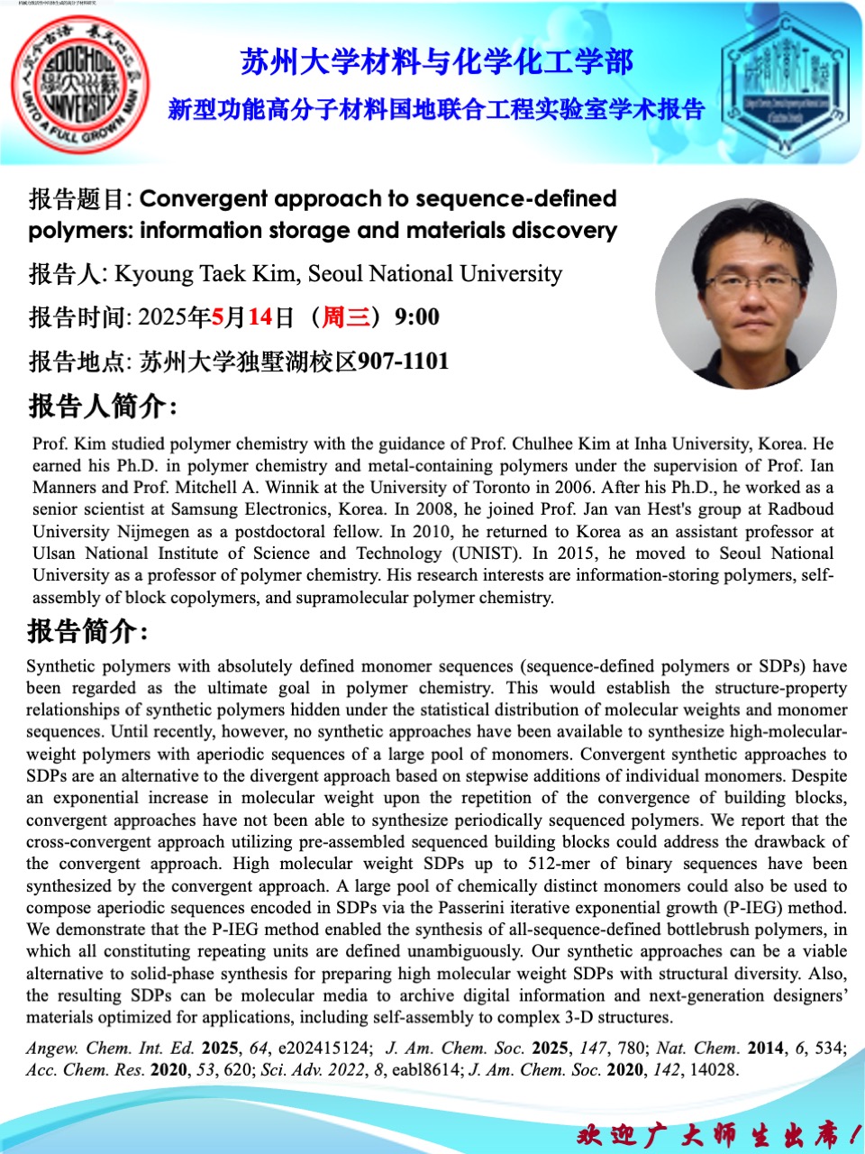 材料與化學(xué)化工學(xué)部學(xué)術(shù)報(bào)告:Convergent approach to sequence-definedpolymers: information storage and materials discovery